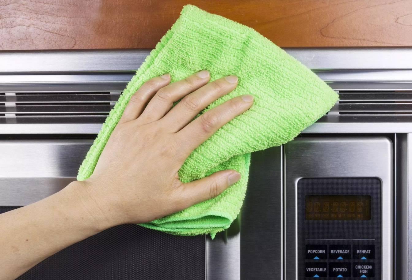 - Заведите привычку после каждого использования вытирать микроволновку слегка влажной салфеткой или губкой.