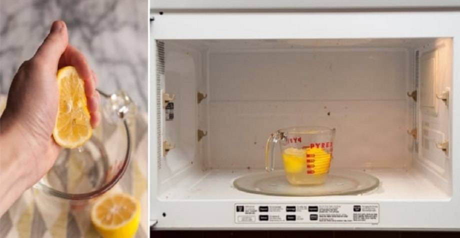 Очередной лайфхак с продуктами, которые обычно есть в каждом доме. Нужно взять лимон, выдавить содержимое в воду. Снова придется поместить миску с раствором в печь, включив ее на пять минут.