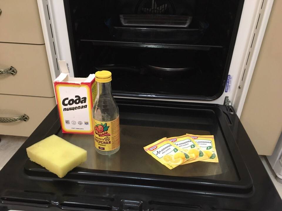 Натрий двууглекислый и уксус — отличный метод выведения тяжелых загрязнений. Этот метод действует быстро. Вымыть печку до блеска не составит труда, если под рукой есть уксус и сода.