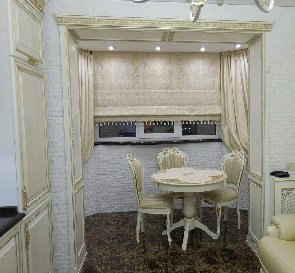 Шторы с эркером. Лучше всего подходят для больших по площади кухонь. Они создадут некоторое театральное оформление. Главное, что следует учесть, это не допустить эффекта тяжести ткани.