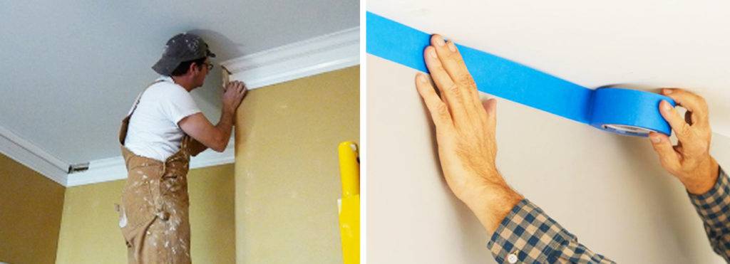 - малярный скотч. Защитит стены и обеспечит аккуратные стыки с потолком.