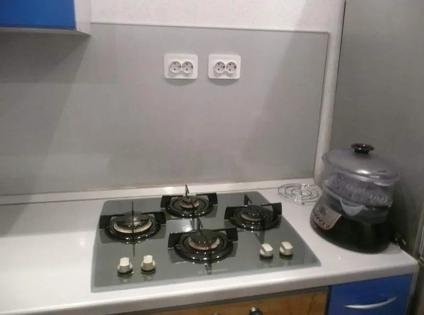 - еще один важный момент касается установки в месте расположения фартука. Розетки на кухне должна возвышаться над столешницей, по меньшей мере, на 10-15 см, чтобы исключить риск попадания в них капель воды и жира.