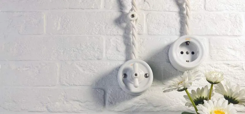 Накладные розетки с открытой проводкой уместны в ретро-интерьерахИсточник werkel-kupit.ru