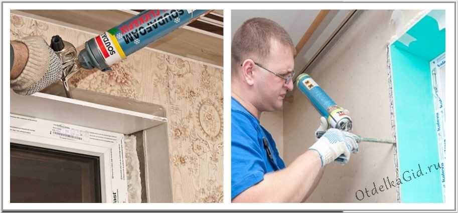 - монтажной пеной, имеющей свойство расширяться, застывая;