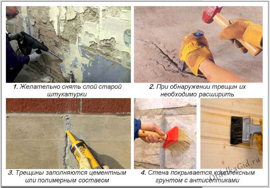 Поверхность очищается от старого декоративного материала, если таковой имеется, удаляется пыль и грязь.