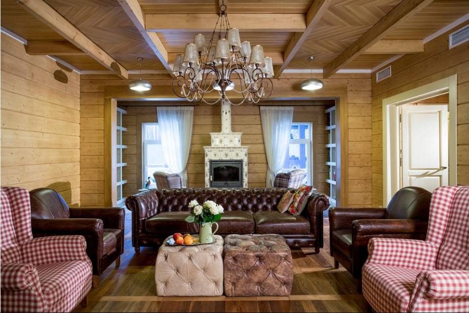 В том случае, если поверхность идеально ровная и гладкая, то в доме, выполненном из дерева можно установить потолок из дерева, который не будет нарушать интерьер.