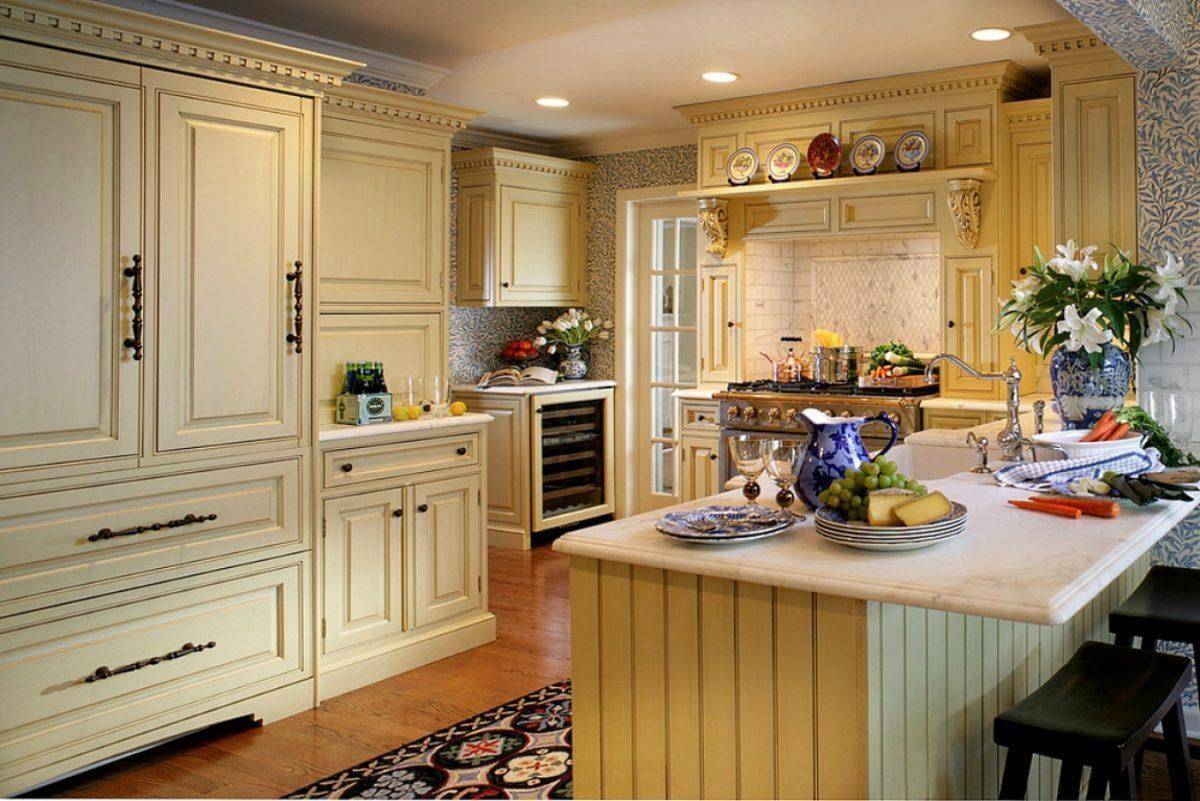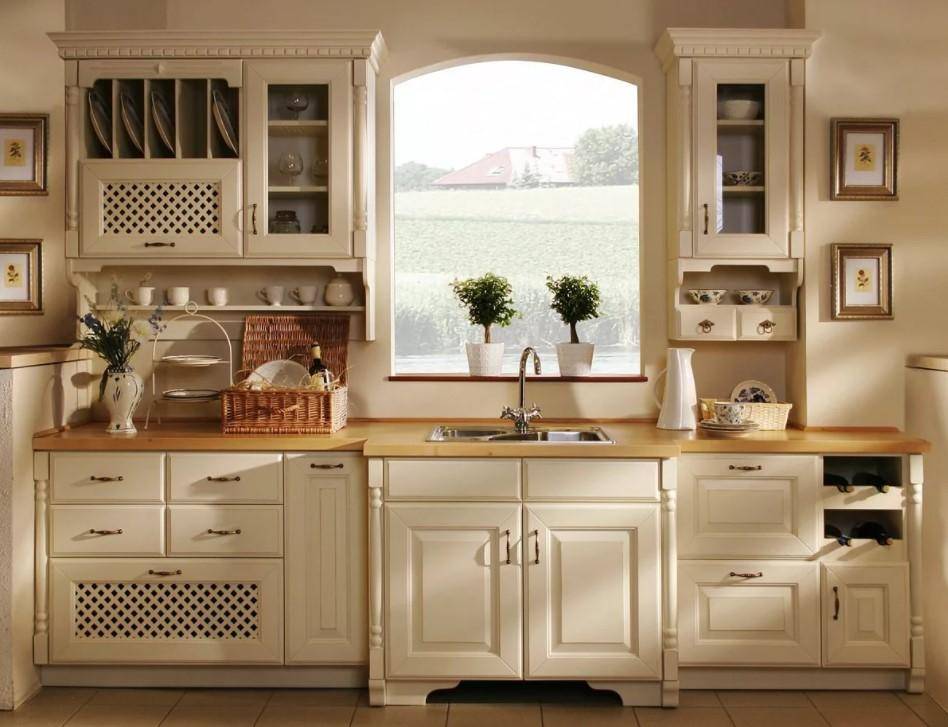 - Кантри стиль идеально передаёт деревенскую атмосферу. Он основан на следующих принципах: тёплые природные краски, массивная мебель из дерева, натуральные отделочные материалы, много открытых полок, которые заменяют навесные шкафы. Шторы, скатерть в клетку, изображения фруктов, животных и птиц, корзинки для хлеба и овощей, глиняная посуда прекрасно отражают сельский быт.