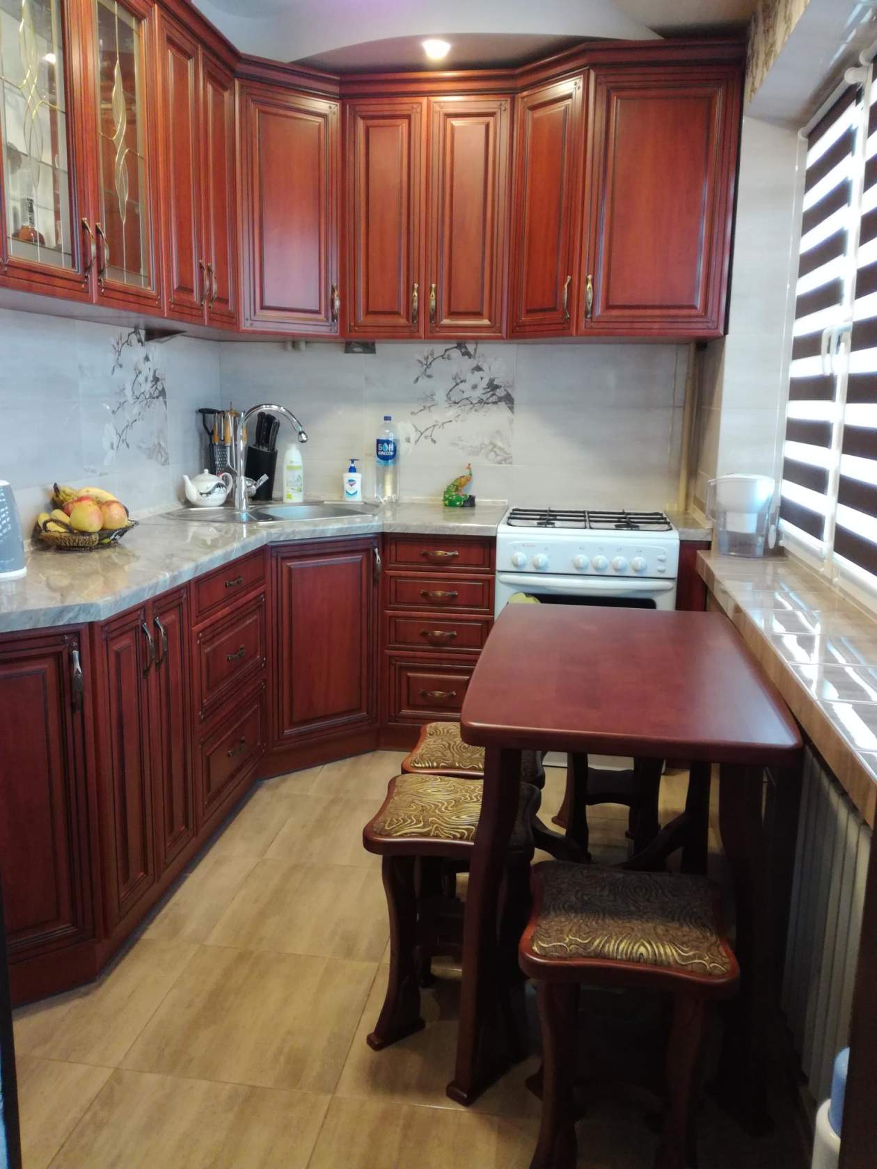 5. Кухонную мебель следует устанавливать вдоль одной из стен, предварительно определившись с местом расположения рабочей зоны и холодильника, после чего можно приступать к размещению мягкого уголка или обеденного стола со стульями.