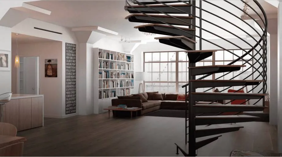 Такое интерьерное решение обладает двумя важными преимуществами. Во-первых, оно имеет оригинальный внешний вид, а во-вторых, оно экономит место (при одинаковой ширине ступеней винтовая лестница занимает в 1,5 раза меньше места, чем маршевая).