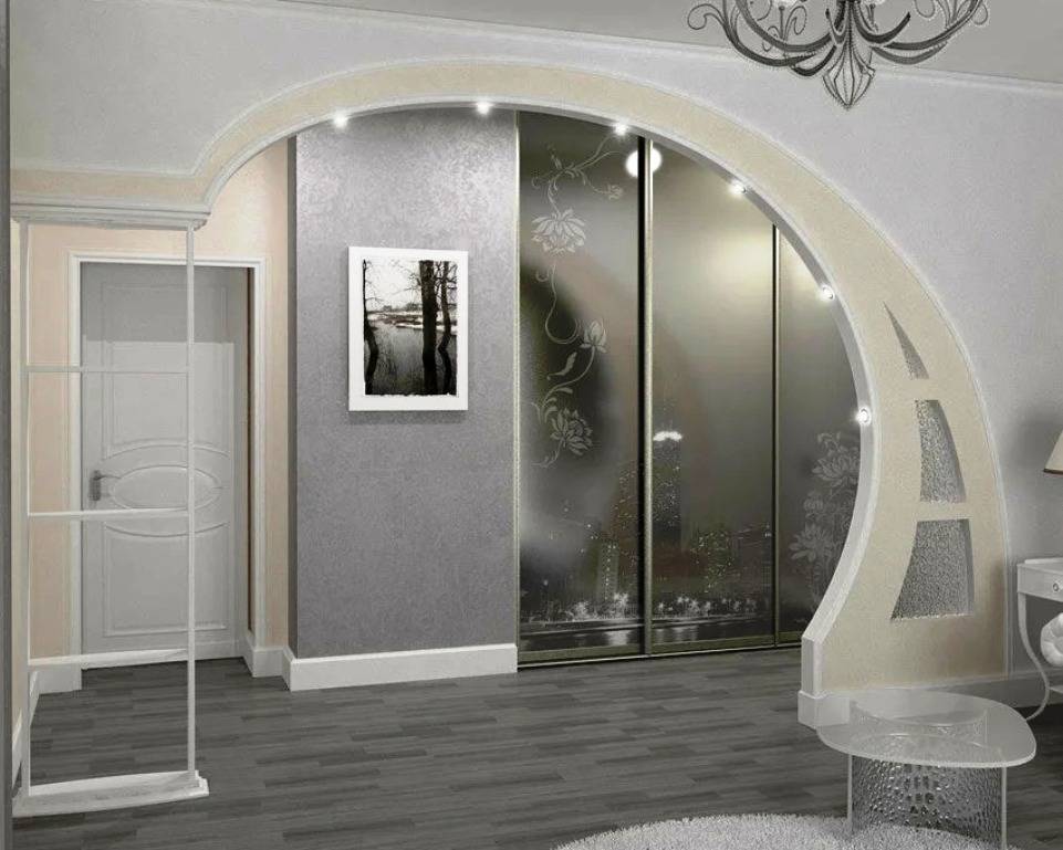 - фигурные элементы по типу арок или округленных форм. Также можно сделать рельефную конструкцию. Позволяют полностью изменить облик комнаты, перенести акценты и целиком изменить восприятие помещения.