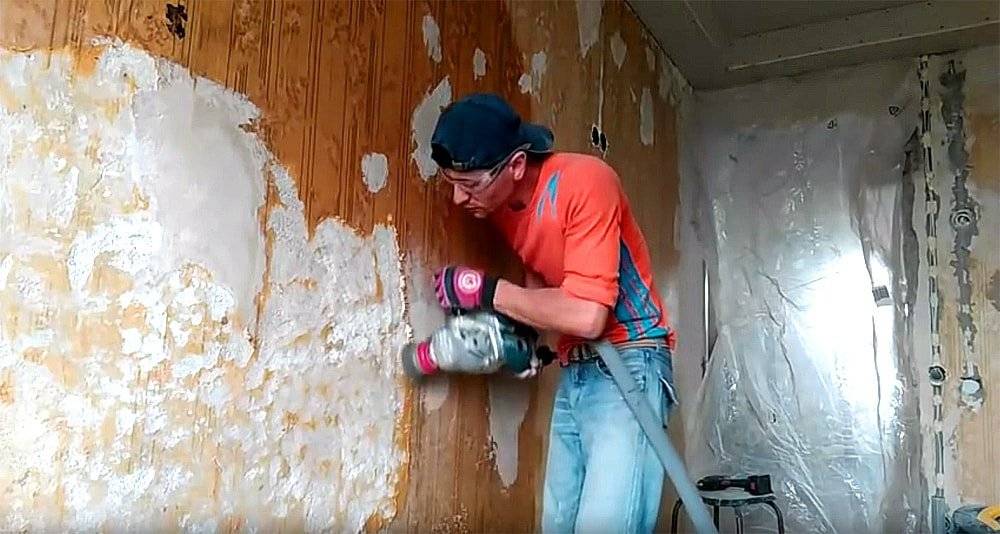 - Использование шлифовальной машинки или дрели со специальной насадкой. Эти приборы уместны, если обои клеились на ПВА. Стойкий и прочный, он остаётся на стене даже тогда, когда полностью удаляется верхний слой и набухает нижний. Между тем, применять их лучше лишь для снятия небольших фрагментов обоев.