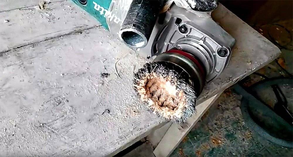 - Для этого на шлифовальную машинку (болгарку) надевается специальная насадка с металлическими проволочными (крацевальными) щетками;