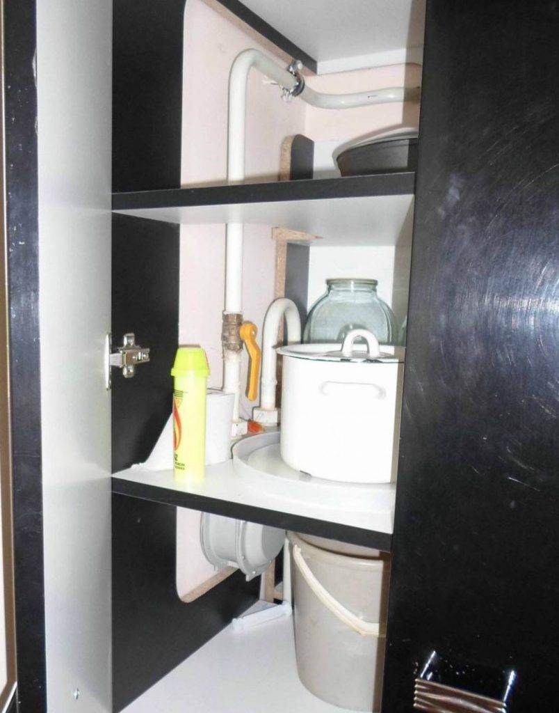 Плохо, что часть шкафа будет использоваться не по назначению (не как место для хранения кухонной утвари). Зато этот способ простой и безопасный – к газовому оборудованию всегда будет свободный доступ.