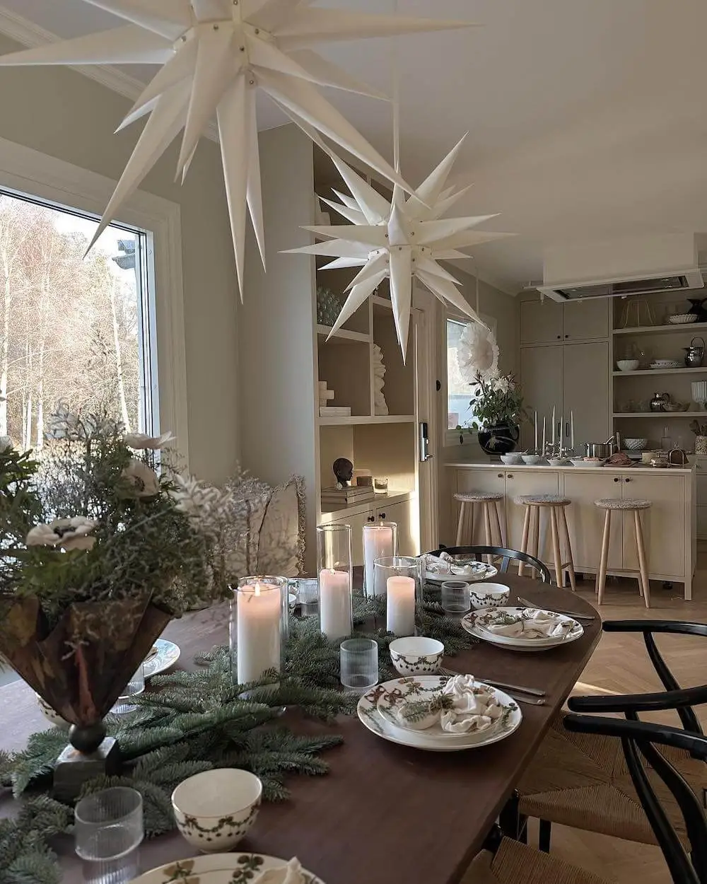 Серая скатерть, белые свечи и имбирные пряники – атрибуты Нового года в стиле хюггеФОТО: s3-ap-southeast-2.amazonaws.com