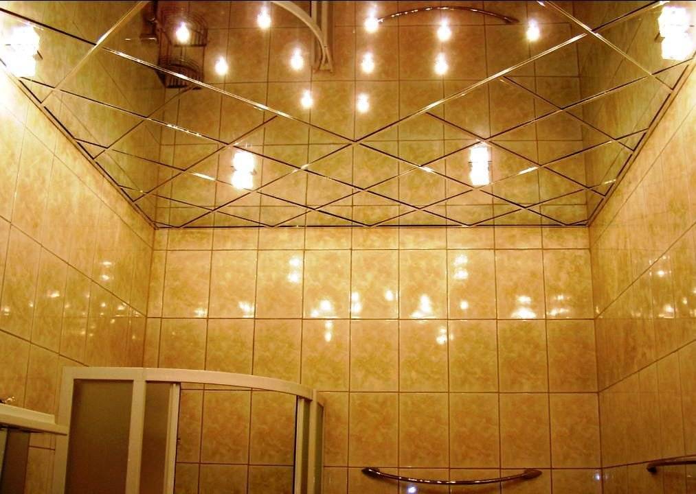 Отличным решением также может стать зеркальный потолок. Для воплощения такой задумки подойдут зеркальные полистирольные панели.