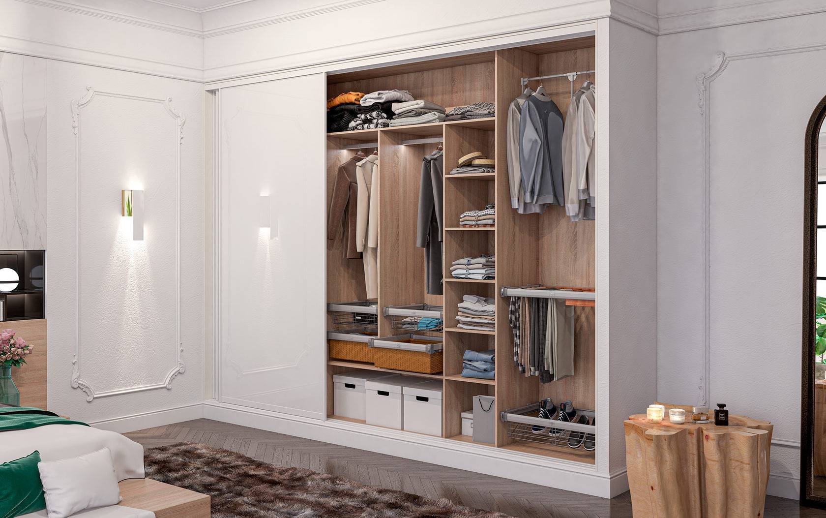 Продуманное, эргономичное внутреннее наполнение – залог вместительности шкафа-купе