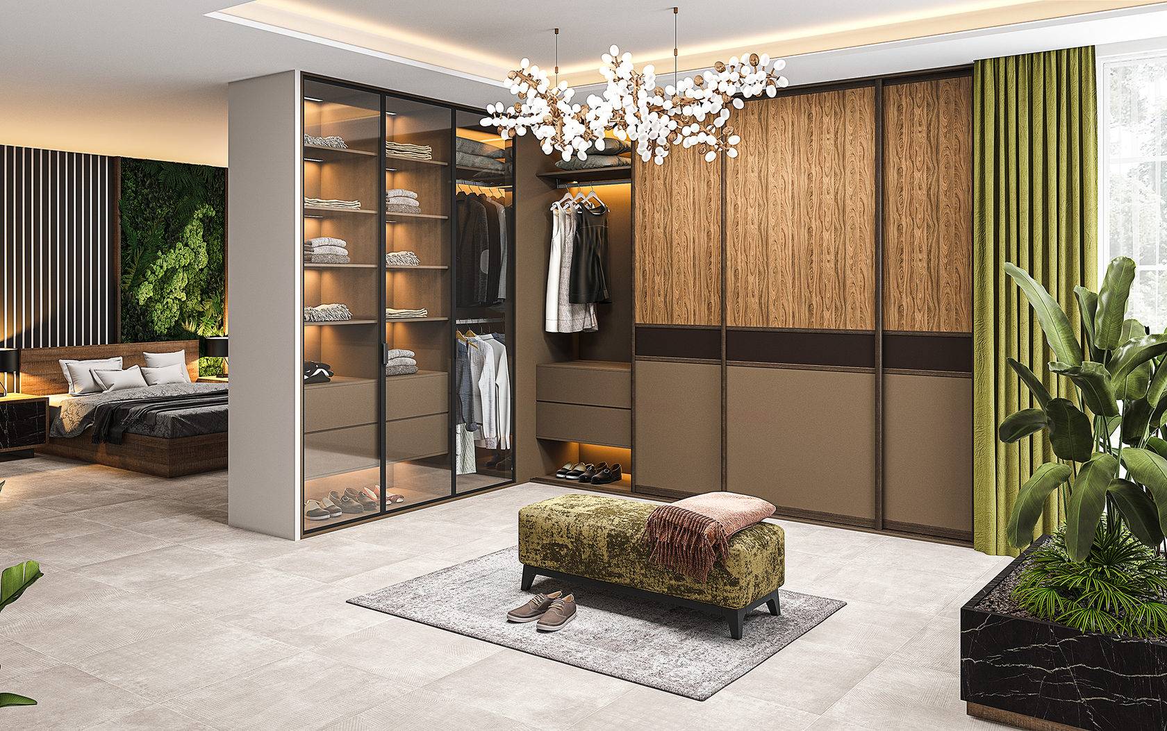 В гардеробной выделяется всего 3 зоны: