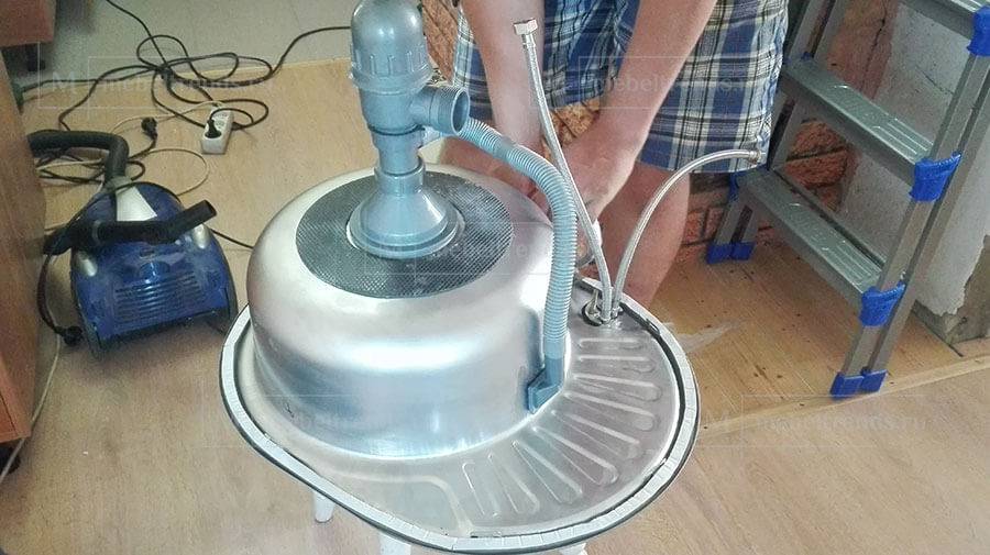 Собираем и устанавливаем сифон. Как правило, к таким мойкам прилагается инструкция, хотя и без нее собрать последний не представляет особого труда.