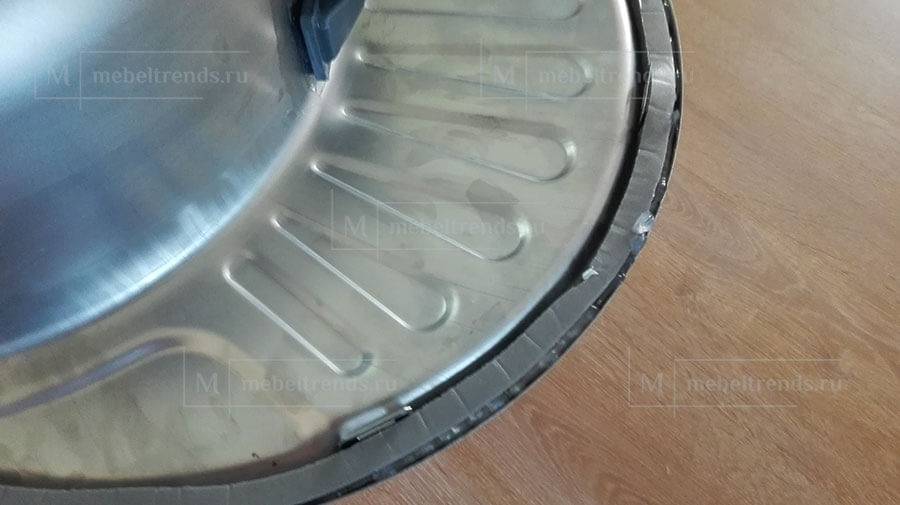 - На выпиленный край с лицевой стороны крепим ленту, идущую в комплекте с мойкой, при ее отсутствии наносим соответствующий слой герметика.