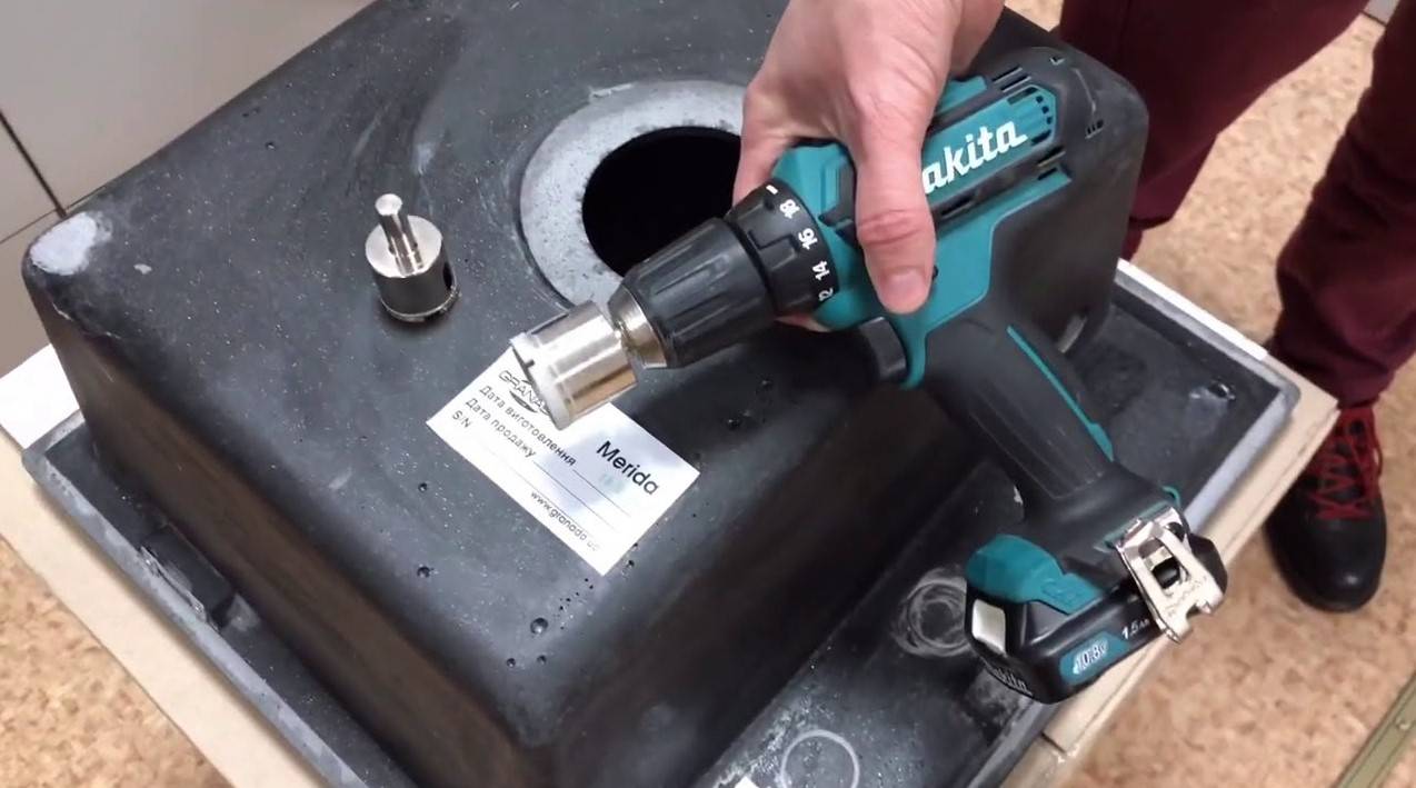 Аккуратно выполнить такое отверстие в раковине из натурального камня самостоятельно, не имея достаточных знаний и опыта — очень сложная задача. Для этого необходима электрическая дрель с алмазными насадками. По этой причине гранитные изделия лучше не устанавливать своими руками, а доверять специалистам.