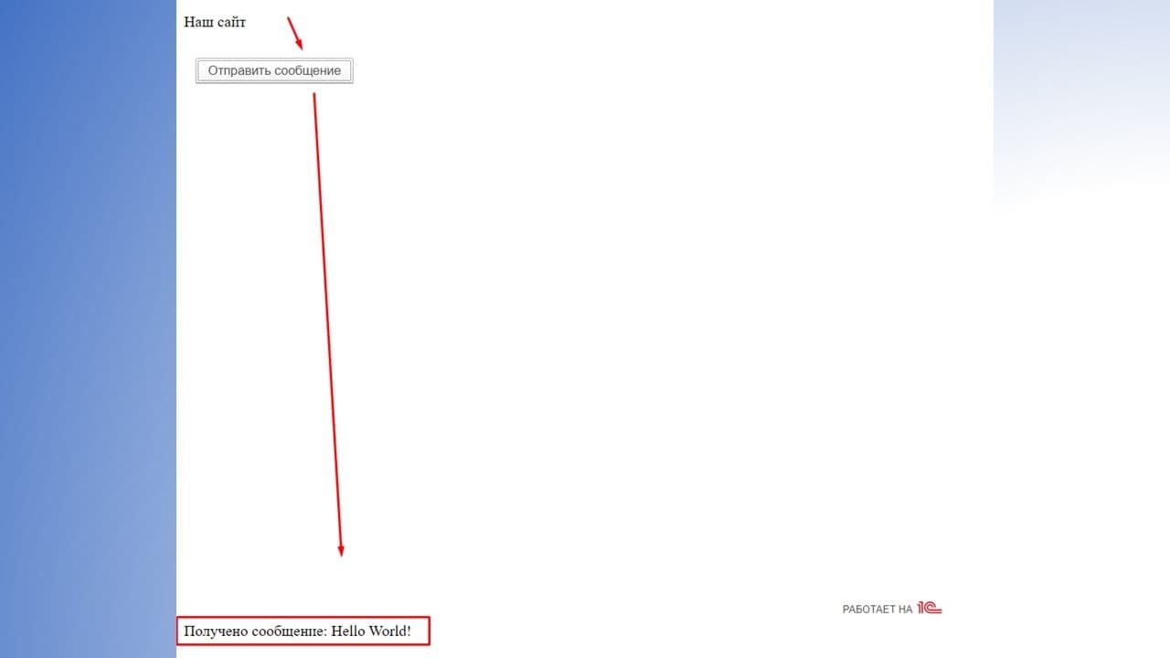 Посмотрим, как это работает. Нажимаем кнопочку «Отправить сообщение», у нас веб-клиент получает сообщение и в соответствии с тем, что у нас написано в скрипте, отрабатывает свою логику.