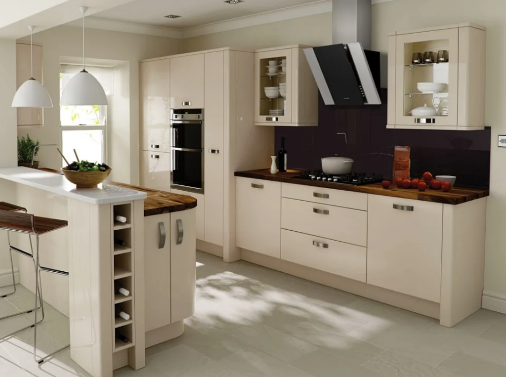 При создании проекта кухни по фото не стоит забывать оформлять задние планки и боковые торцы шкафчиков, чтобы проект был завершенным