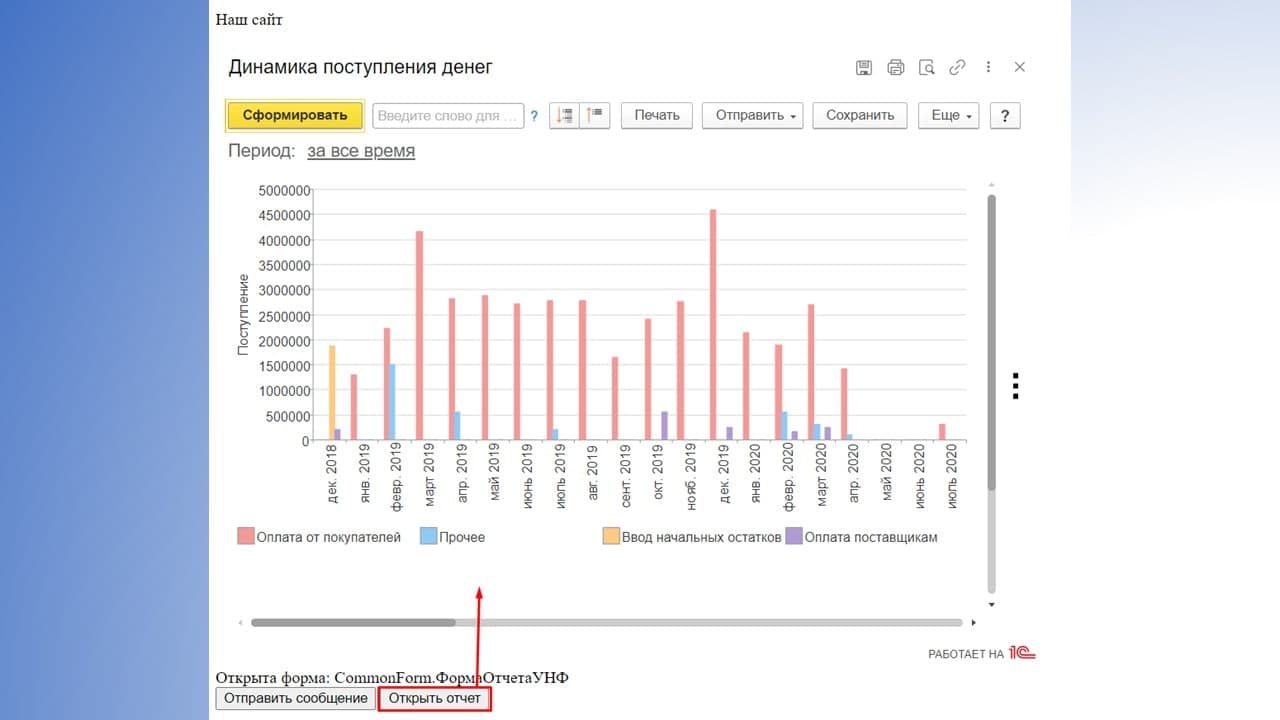 Мы нажимаем на сайте нашу кнопочку «Открыть отчет», у нас во встроенном клиенте открывается отчет.