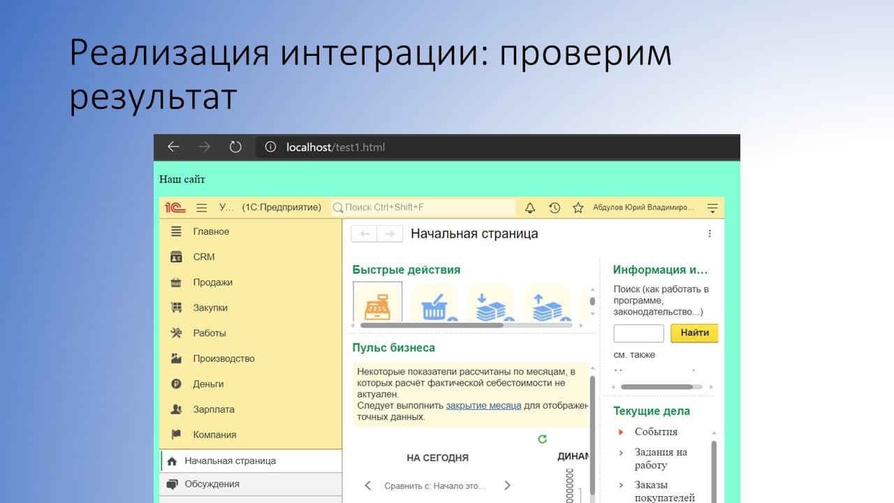 Мы можем с помощью обмена сообщений сделать так, что сайт будет знать, что происходит в 1С, а 1С будет знать, что делает пользователь на сайте.