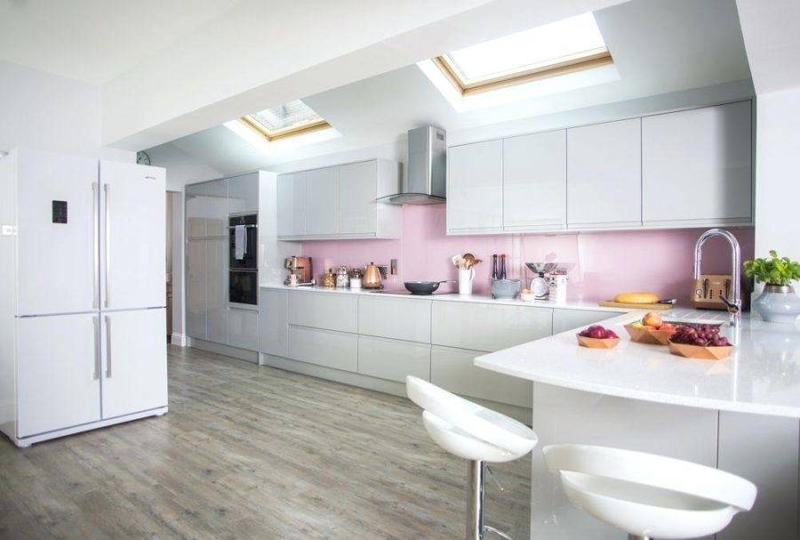 Просторным квадратным и прямоугольным помещениям без такой мебели не обойтись. Большая площадь позволяет укомплектовать гарнитур различными системами, при этом обеспечить удобное соседство с бытовыми приборами. Здесь главное соблюсти баланс: длина параллельных линий кухни должна составлять 1,5-2 м, а соединяющая их часть – до 2,5 м. От гарнитура, не вписывающегося в эти рамки, лучше отказаться в пользу других видов мебели. Удаленное расположение различных зон друг от друга напрямую влияет на удобство их эксплуатации.