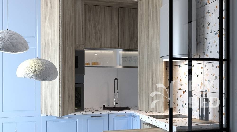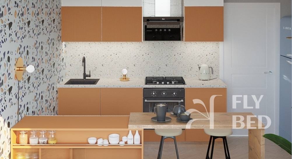 - Имейте в виду, что при наличии газового котла на кухне и вытяжки с отводом в вентиляцию вы будете привязаны в проектировании к расположению вентиляционного канала и газовых труб.
