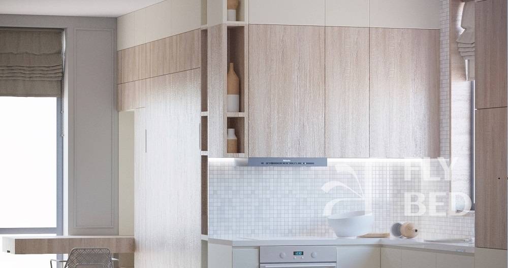 Остановить своё внимание потребуется и на тех местах хранения кухонного оборудования, которые будут находить над рабочей поверхностью, ведь именно там хранится большая часть всего самого необходимо. Поэтому, места хранения должны быть максимально удобными и практичными, чего можно добиться с помощью самых обычных распахивающихся дверец