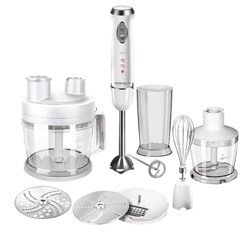 Погружной блендер с функцией измельчителя для обработки практически любых продуктов. В комплекте поставки предусматривается насадка для нарезки фруктов или овощей кубиками. Емкость для измельчения имеет объем 2 л, чего более чем достаточно для большинства бытовых задач. Дополнительно модель комплектуется венчиком для взбивания. Для удобства пользователя система дополнительно комплектуется приспособлением для быстрой очистки.
