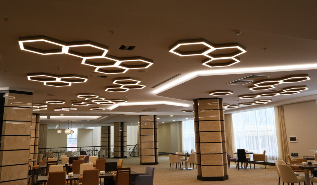 Припотолочные светильники с чёткой геометрией линий будут идеальным вариантом