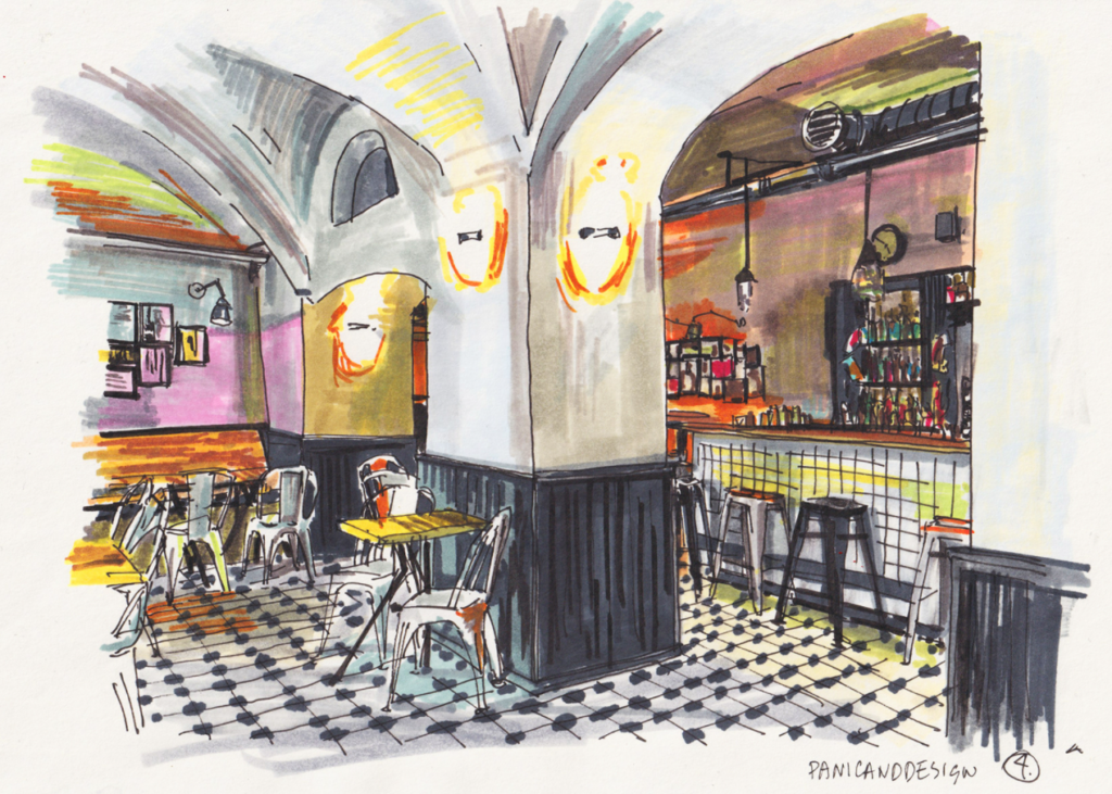 Скетч интерьера кафе от Ira Lensberr. Источник