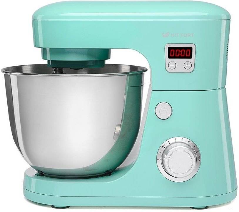 4. Kitfort KT-1350 – планетарный миксер с мясорубкой мощностью 1300 Вт, стоимостью около 14900 рублей. Подходит для профессионального использования. Комплектация состоит из вместительной чаши объемом 6 л, крышки, 3 насадок для приготовления сложных блюд, лопатки. На корпусе расположены присоски для лучшей устойчивости. Также оборудование имеет 6 скоростей, таймер и защиту от перегрева.