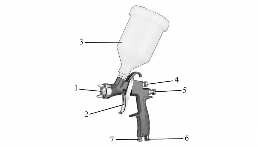 Конструкция краскопульта состоит из таких элементов: