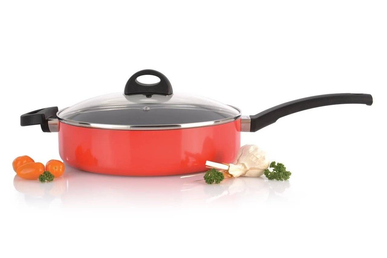 - Сотейник с мраморным покрытием или другим многослойным антипригарным слоем не боится кислой среды и помогает создавать блюда с минимальным использованием жиров.