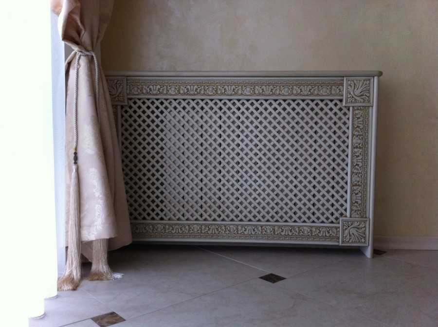 Экран для радиатора выполняет несколько важных функций: увязывает прибор с дизайном, защищает его от повреждений и оседающей пыли, при сгорании которой выделяют токсины.