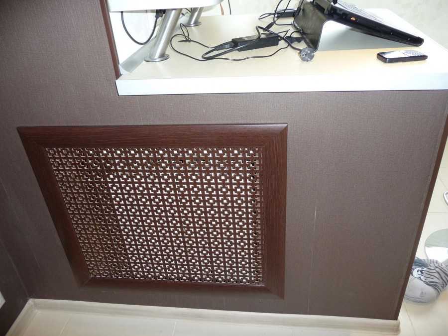 В нижней части короба необходимо оставить зазоры, которые помогут обеспечить тепловую конвекцию и не будут мешать поступлению снизу прохладного воздуха. Основную часть, расположенную спереди, рекомендуется изготавливать в виде решетки, сделать специальные отверстия для циркуляции воздуха, которые можно декорировать.