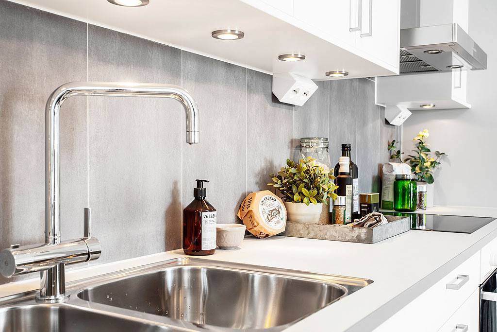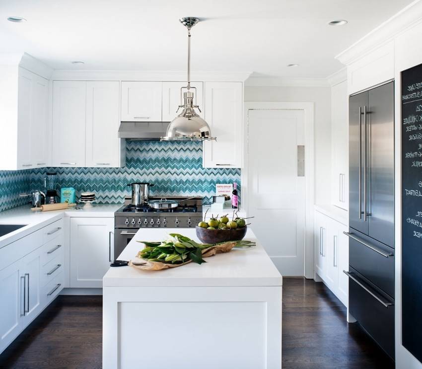 Для классической белой кухни можно использовать плитку с интересным орнаментом, что позволит сделать интерьер более современным