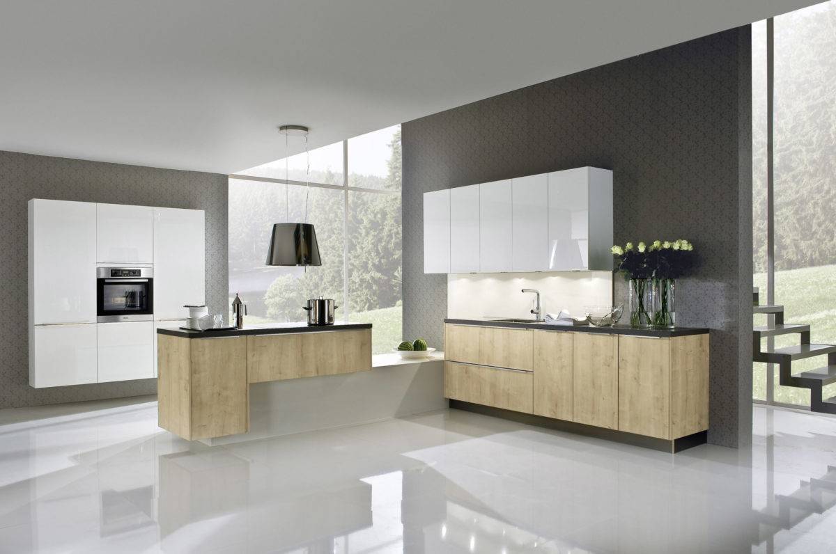 Если среди покрытий есть дерево, его лучше размещать подальше от мойки и водопроводных труб (к примеру, в зоне обеденного стола). То же относится и к ламинату, деформирующемуся под действием влаги. Возле раковины и плиты лучше уложить прочную плитку. Между керамикой и ламинатом монтируют порог из пластика, металла или дерева. Если стык материалов имеет криволинейную форму, его заделывают пробковой лентой или специальной затиркой для швов. Само исполнение соединительной линии подбирают в соответствии с дизайном помещения. Если порог выполнен из пластика, лучше, чтобы он был обрезиненным – это предотвращает скольжение.