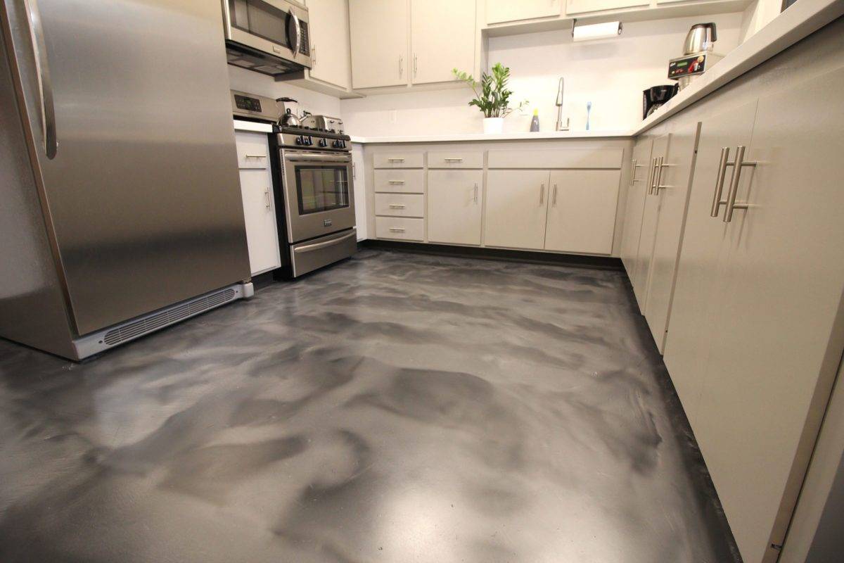 Пол на кухне можно не выкладывать, а заливать. В этом и состоит основное отличие данного вида покрытия. Основанием служат бетон или дерево. Толщина варьируется от 1 до 7 мм.