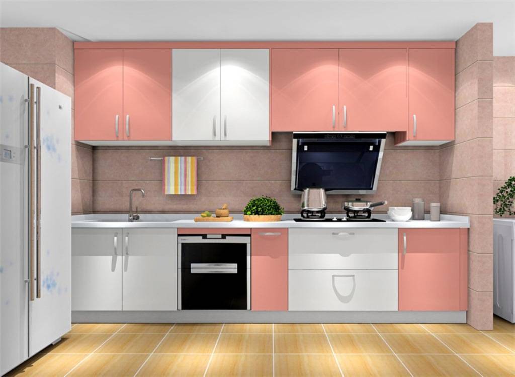 С целью экономии денежных средств, альтернативным вариантом станет гарнитур из ЛДСП. Однако, несмотря на свою привлекательность, фасад в процессе эксплуатации разбухнет, а персиковый цвет под воздействием солнечных лучей, потеряет свою привлекательность.