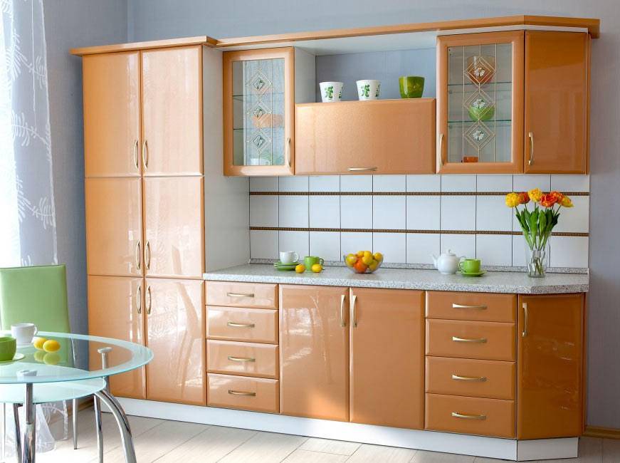 Глянцевый персиковый гарнитур — это комфорт и практичность в одном флаконе