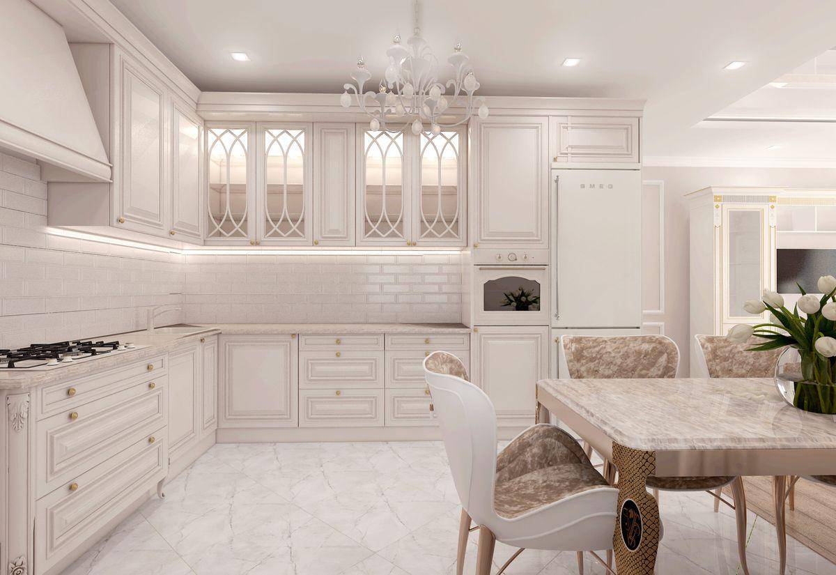 Задействование белого цвета в качестве нейтрального фона. Отличный вариант для модного интерьера кухни в 2022 году