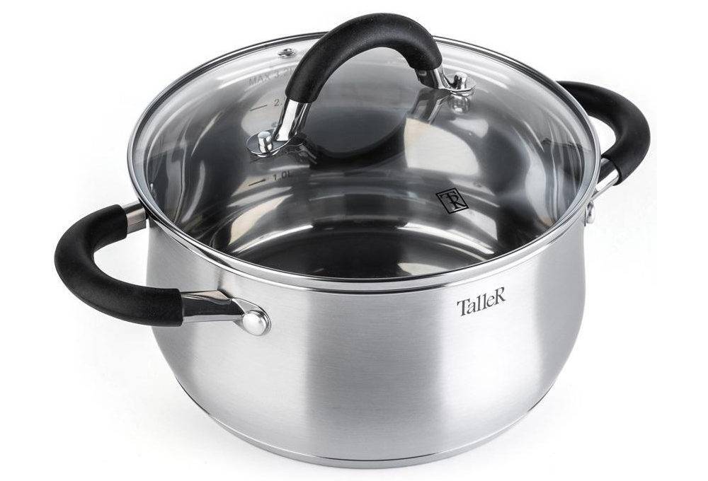 Изделие из нержавеющей стали высокого качества. Отличается привлекательным внешним видом и одновременно прочностью. Эта практичная модель создана по технологии тройного дна, состоящего из штампованного и вплавленного диска из алюминия. Такой метод позволяет равномерно распределять тепло, сохраняя его на длительное время. За счет этого эффекта процесс приготовления продолжается после выключения плиты. В Rondell Flamme можно готовить без применения масла, либо с минимальным его количеством. Благодаря этому продукты сохраняют свои природные вкусовые качества. Дополнительно, изделие оснащено мерной шкалой, носиков для слива воды. Диаметр верха – 20 см, диаметр дна – 16,5 см. Толщина составляет 5 мм (дно) и 0,6 мм (стенки). Дно многослойное, вплавленное. Средняя стоимость составляет – 2 198 руб.
