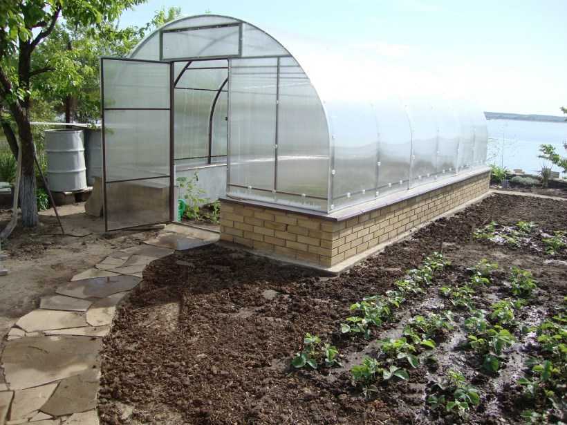 Средние размеры варьируются: по ширине до 4,5 м, по длине до 12 м, по высоте до 2,7 метра. Это позволяет выращивать в ней высокорослые и средние овощные культуры, размещать несколько грядок. На округлой форме не будет задерживаться конденсат и попадать на листья растений, а также на ней удобно размещать освещение. Среди недостатков отмечают плохую вентиляцию, но в современных постройках могут размещаться форточки по всей длине изделия.