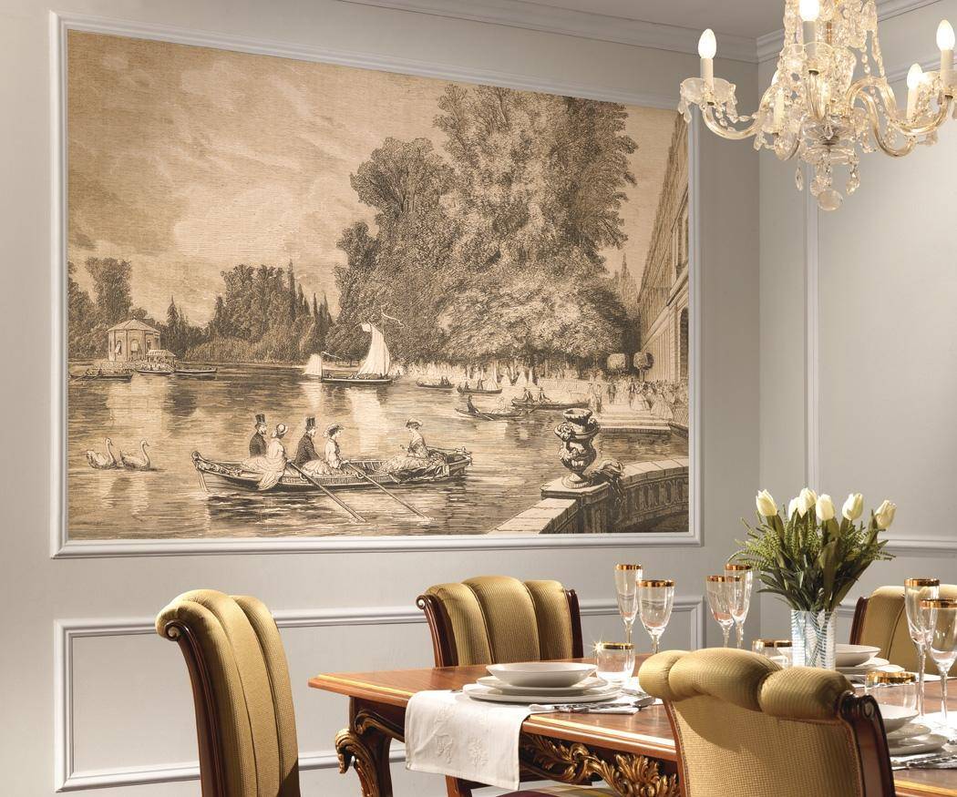 Например, если у вас на стене картина с видом греческого амфитеатра, то нужны и потолочные фризы в подобном стиле, и декоративная каменная кладка на каком-либо участке стены и соответствующая мебель.
