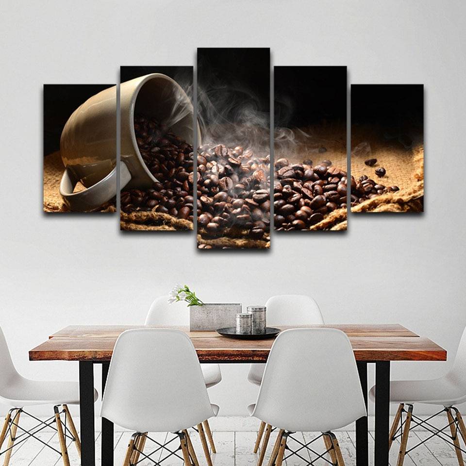 Лучше всего повесить картинку для кухни на стену возле стола. Этот вариант наиболее распространен, уместный всегда. Главное, расположить ее по центральной оси со столешницей. Если стола на кухне нет, но есть диван – ситуация аналогична.