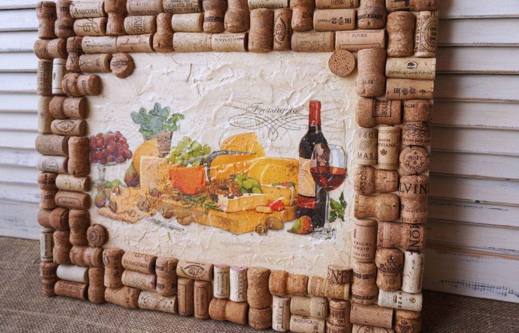 Оригинальным украшением станет панно-органайзер, которое будет служить не только украшением, но и выполнять практическую функцию. На него можно прикрепить список покупок, ключи, фото, визитные карточки, экстренные телефоны или шутливые записки. Можно купить органайзер или сделать его своими руками из деревянных спилов, фанеры, винных пробок или листа металла. В последнем случае для крепления понадобятся декоративные или обычные магниты.